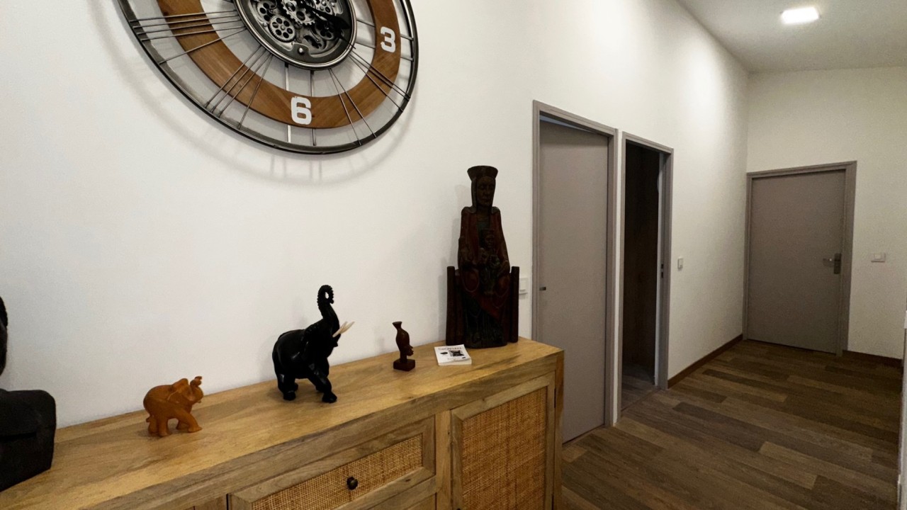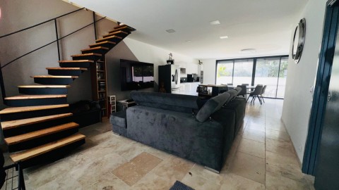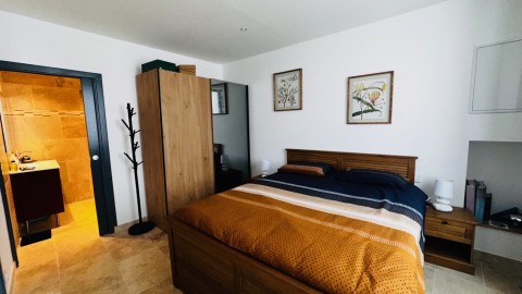 Double vitrage dernière génération, portes en galandages, reliée au réseau communal du tout à l'égout, grande baie vitrée dotée de stores persiennes avec lames motorisées, sol en carreaux de travertin, climatisation réversible DPE B.
