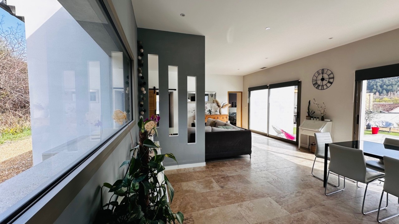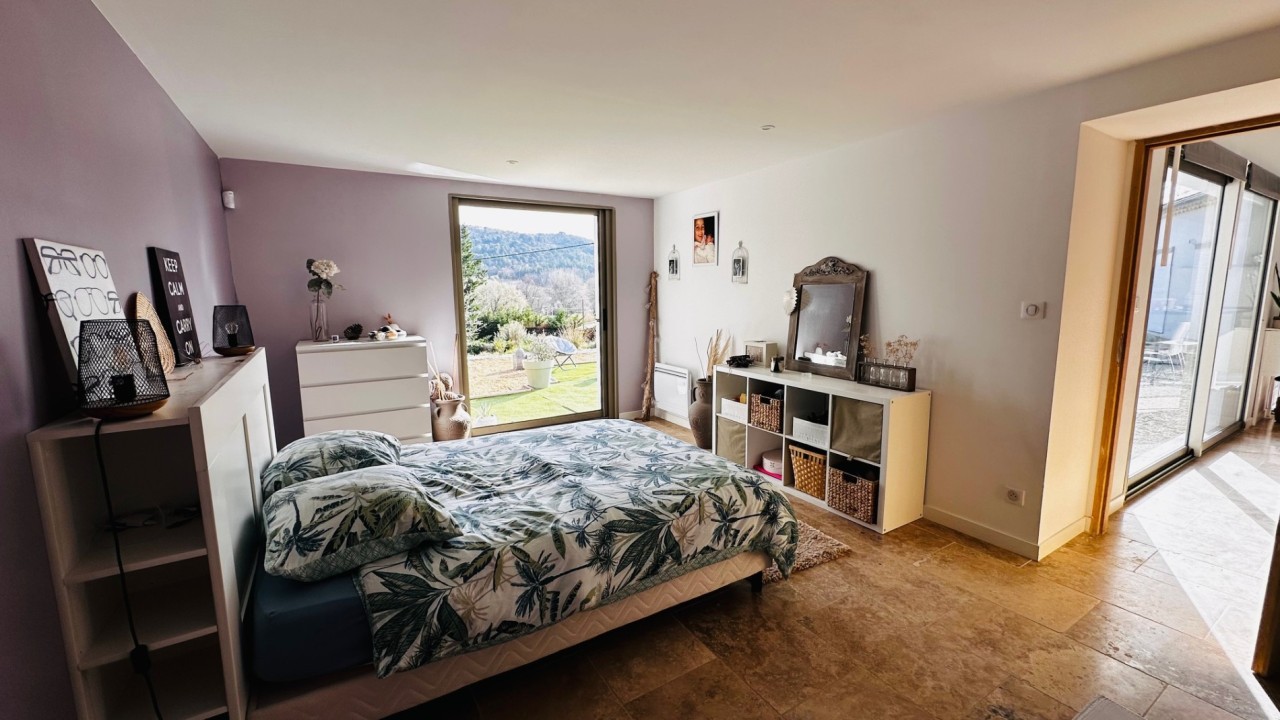 Cette villa d'architecte neuve au confort moderne entièrement de plain-pied de 157m² construite en 2023 est située à 15 mn de Vaison la romaine et 15mn de Buis les Baronnies. Elle est implantée sur une parcelle de terrain de 1245m² en position dominante et bénéficie d'une exposition Sud. Une partie de terrain d'env. 400m² restant constructible.