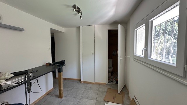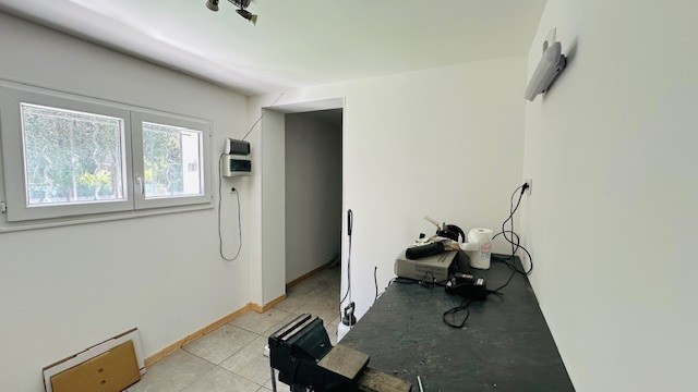 -Un grand atelier avec pièce de rangement aménagée ouvrant sur l'extérieur.