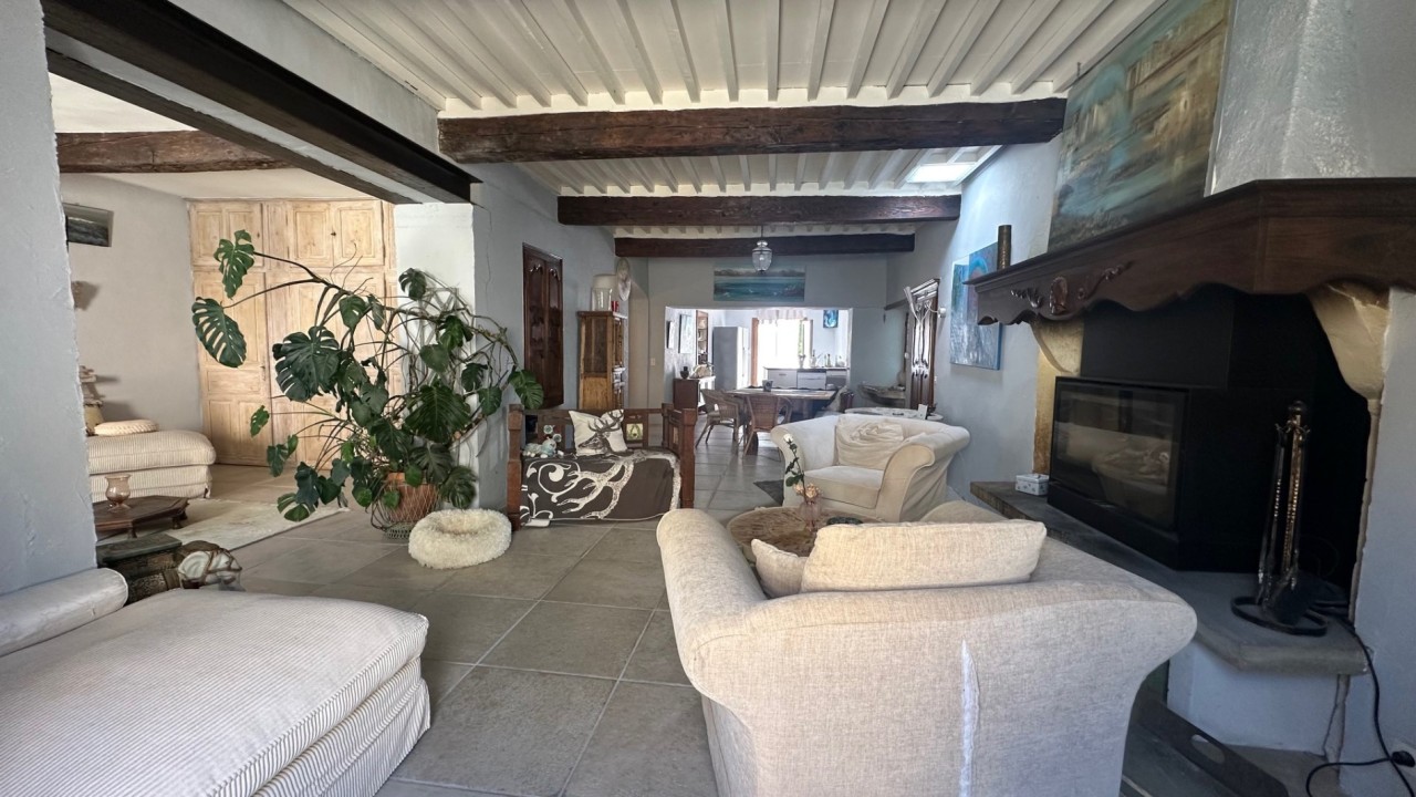 - Ouvrant sur la terrasse, Une vaste pièce de vie traversante d'une surface d'env.80m² composée d'un espace cuisine, un espace dinatoire, un salon doté d'une cheminée à insert et un 2eme salon en continuité avec placards de rangement.