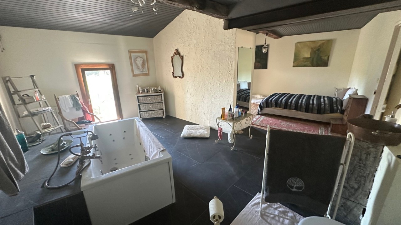-Une chambre parentale au parquet ancien avec sa salle de bain (baignoire balnéo) /wc.