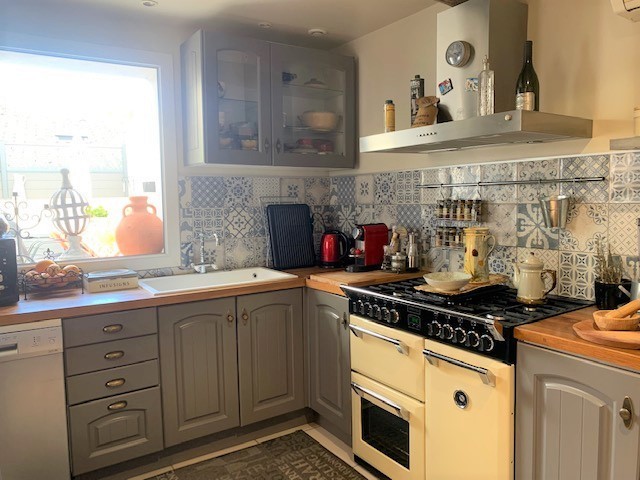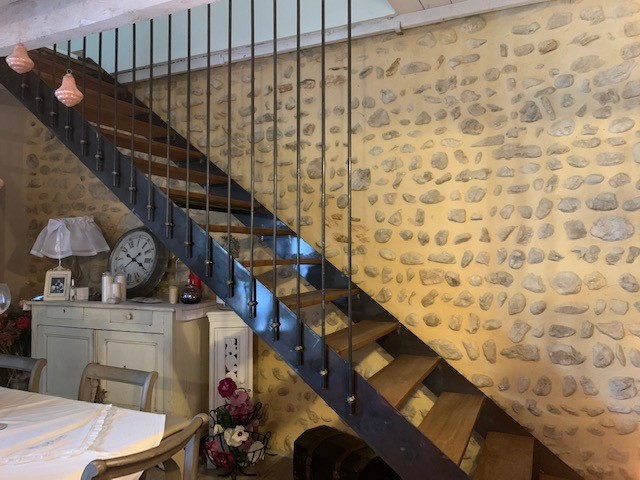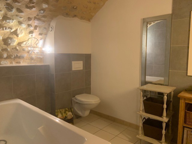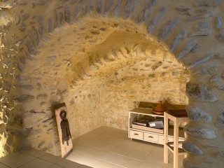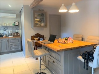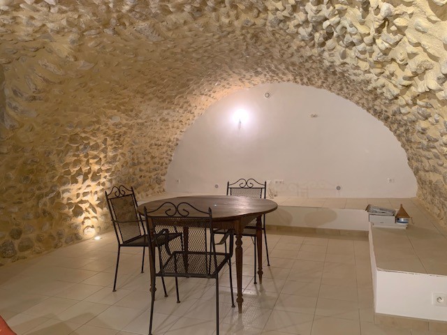 Une pièce de vie composée d' une cuisine équipée aménagéé ouvrant sur un espace séjour-Une chambre avec sa salle de bain wc-Une pièce technique ( lave linge ballon d' eau chaude)-Une grande pièce voûtée