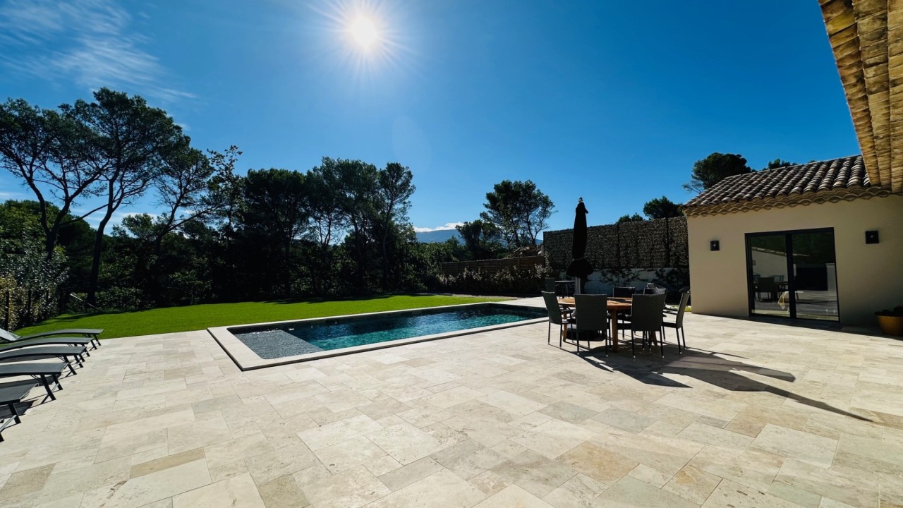 Edifiée sur un terrain clos et arboré en position dominante avec vues panoramiques et imprenables de 1 510m², la propriété permet de profiter d'une piscine chauffée de 4.5x9 intégrée dans un jardin paysager planter de 41 oliviers et planté d'essences méditerranéennes, le tout dans une ambiance typiquement provençale. Cette maison propose des prestations de qualité : chauffage et rafraîchissement par le sol, volumes généreux, belle hauteur sous plafond, DPE B. Une maison d'exception dans un environnement privilégié !