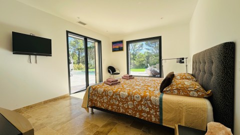 Dès l'entrée, vous serez conquis par une vaste pièce de vie traversante ouvrant sur une vaste terrasse le jardin et la piscine avec toile de fond le Mont Ventoux et la pinède.