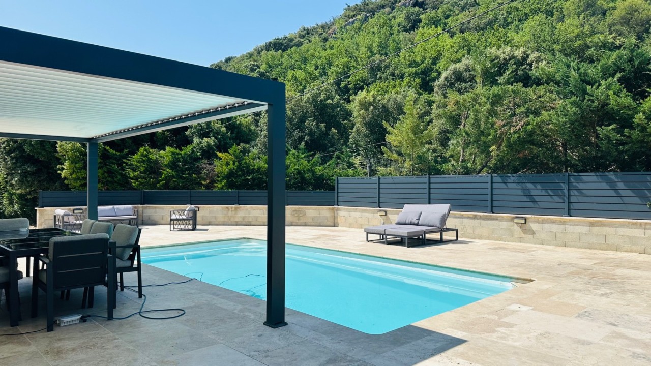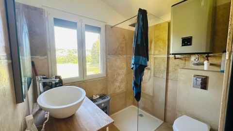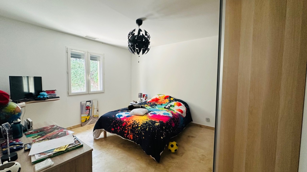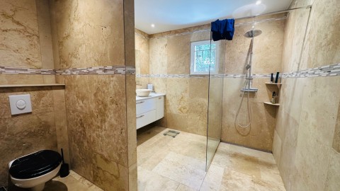 Les prestations proposées : Double vitrage Alu, chauffage et climatisation en pompe à chaleur par système réversible gainable, grands carreaux de travertin, volets roulants solaires, pergola bioclimatique, tous les travaux ont été réalisé par des artisans de la région. La façade mérite une remise en état.