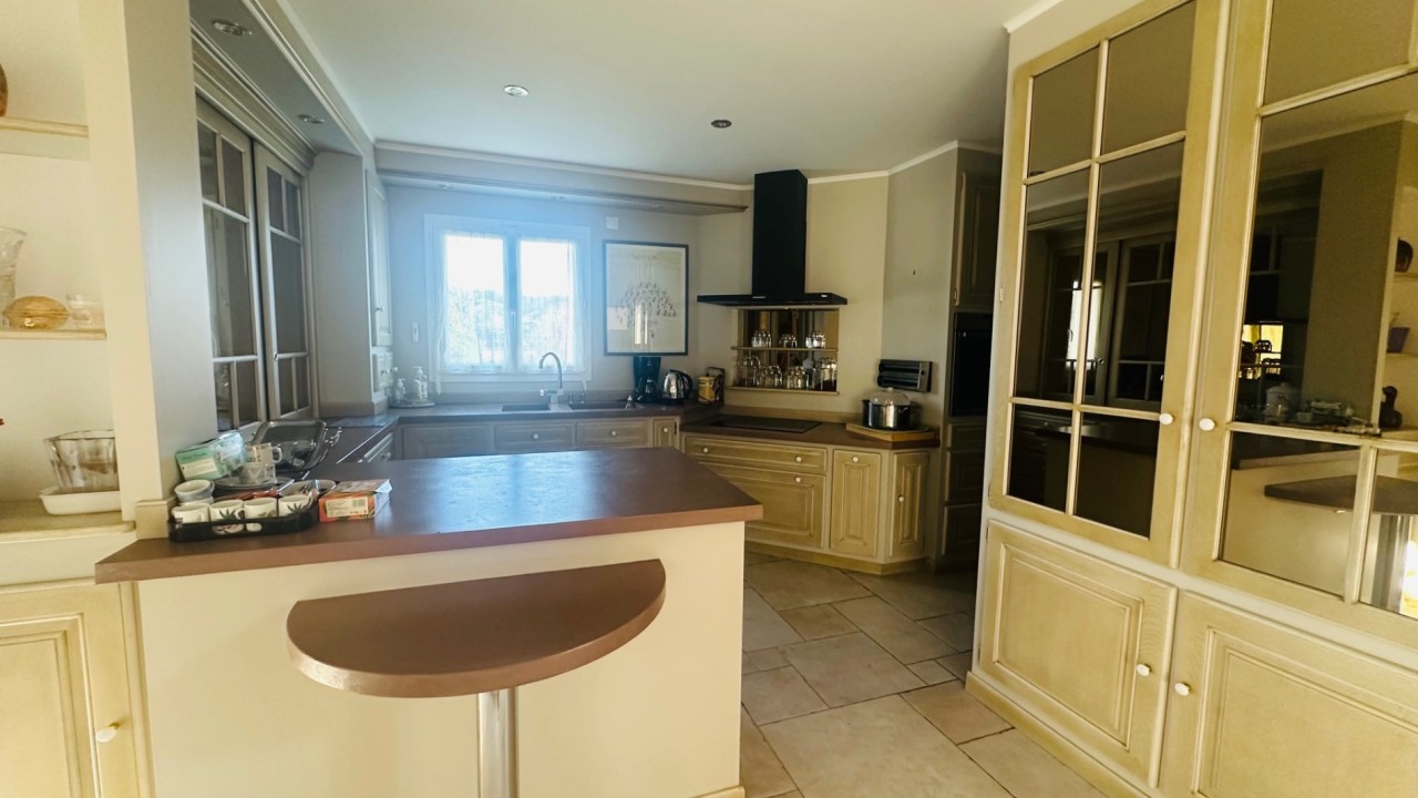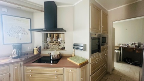 -Une cuisine équipée aménagée ouvrant sur terrasse.