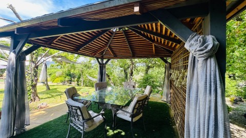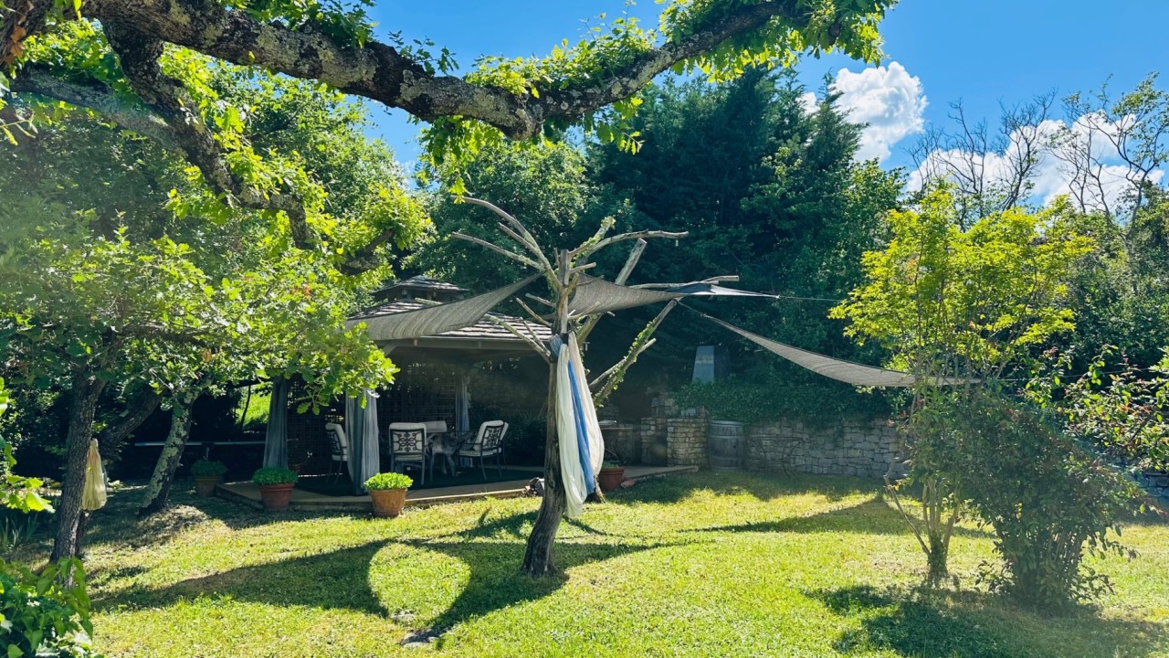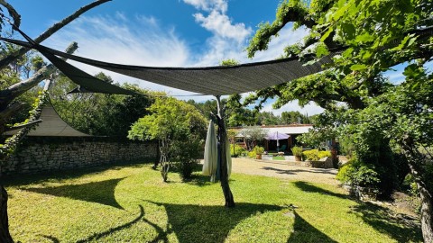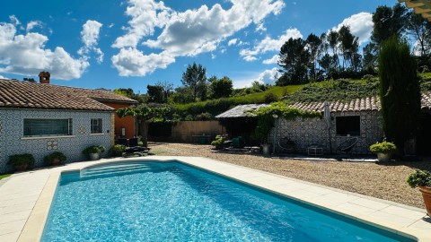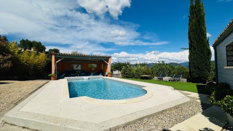 L'espace extérieur est sublimé par une superbe piscine et son poolhouse judicieusement implantée en position dominante offrant une parfaite intimité, sa chambre d'été, son espace terrasse d'été avec son dôme en cèdre rouge du Canada, son barbecue en pierres, de véritables invitations à des moments de détente et de convivialité en famille entre amis avec des vues imprenables. Un lieu rare où se mêlent nature, confort, élégance, originalité.