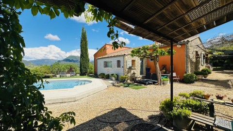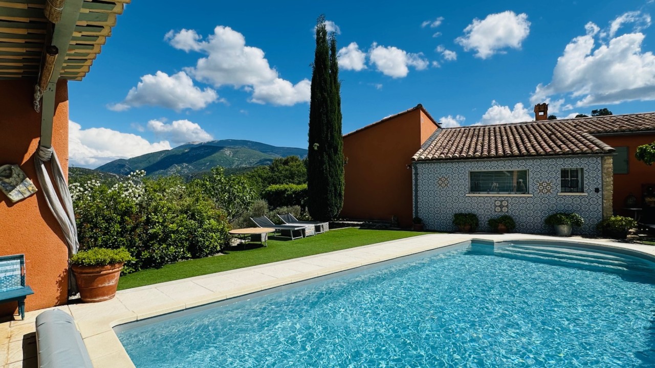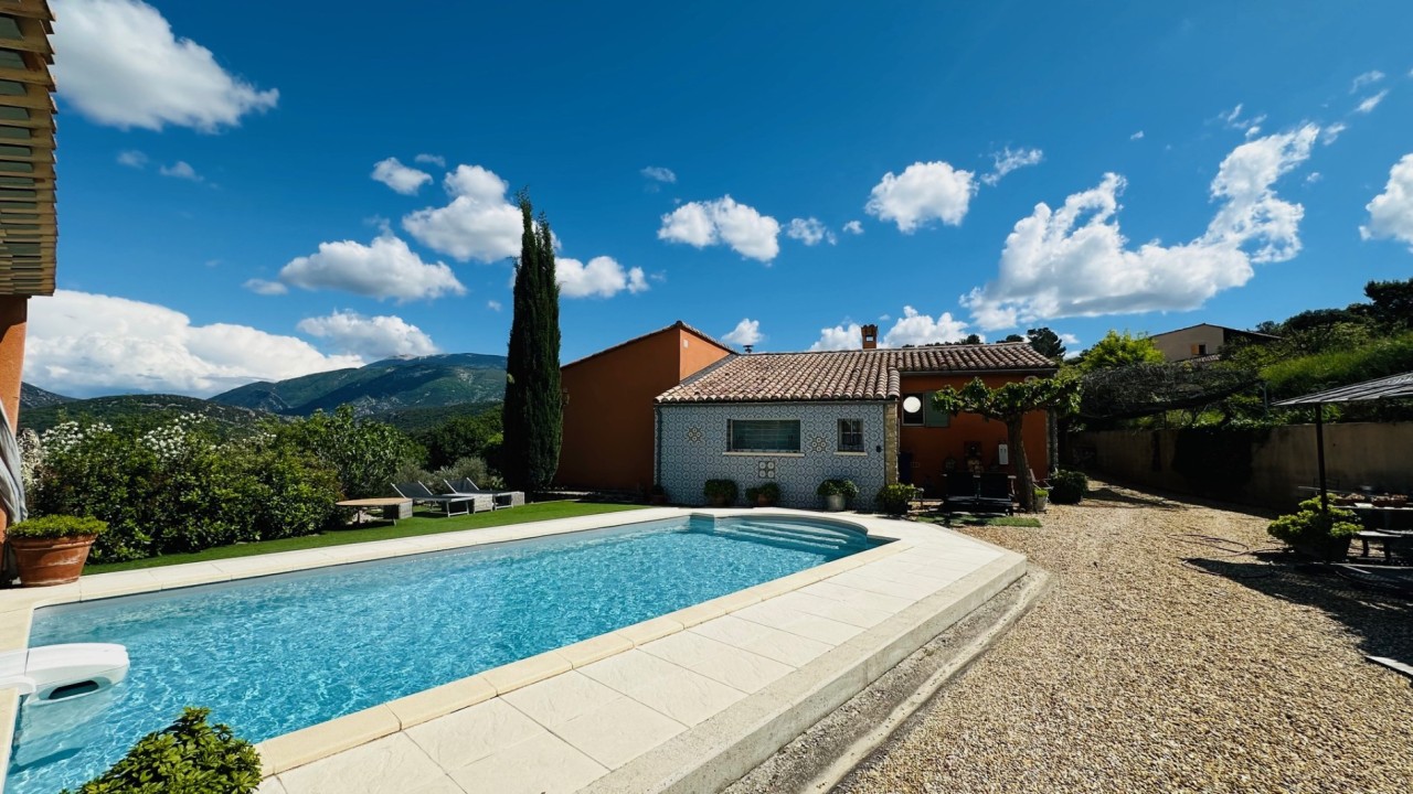 Superbe Propriété dans un cadre champêtre avec vues imprenables sur le Mont Ventoux et la campagne environnante dans la région de Vaison la Romaine 84340 Vaucluse 9 pièces-3/4 chambres - Terrasse couverte 70m²-1 piscine 9x4 avec pool house et dépendances-